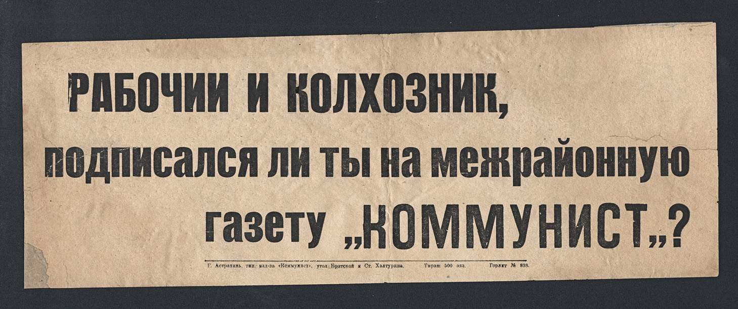 Размер плаката 38,6 х 12,5 см. Редкое малотиражное (500 экземпляров) региональное издание Астраханского Губернского Комитета Российской...