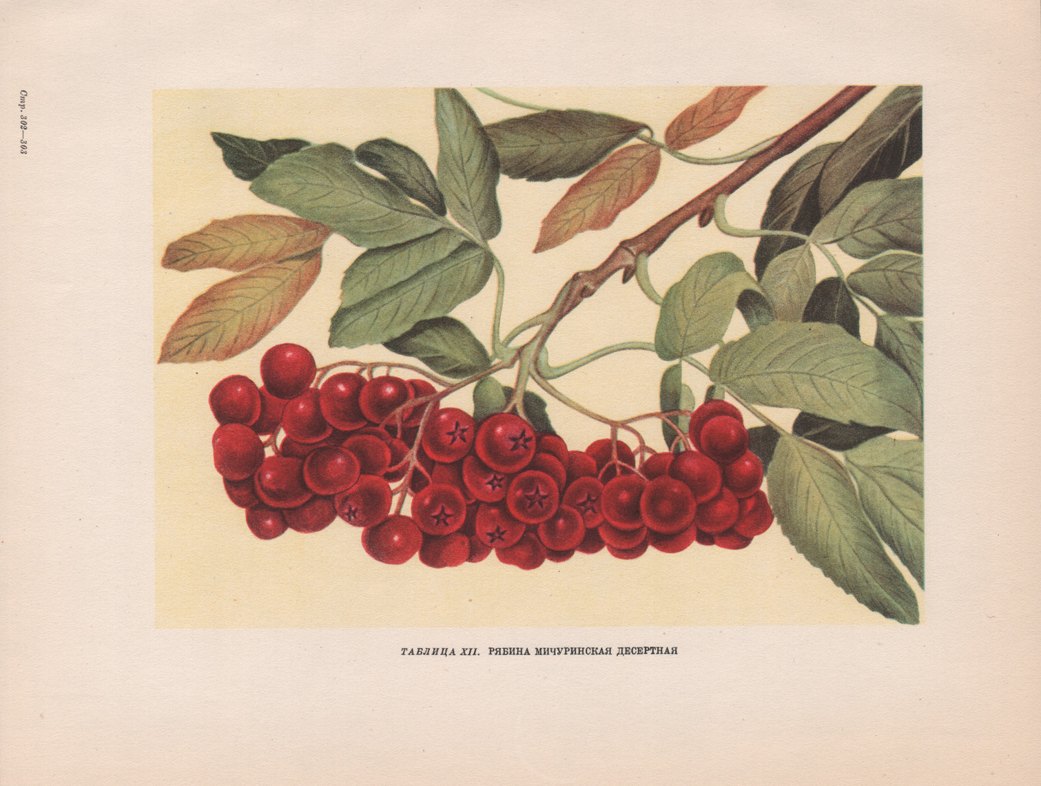 Иллюстрация 1949 года. Рябина Мичуринская десертная