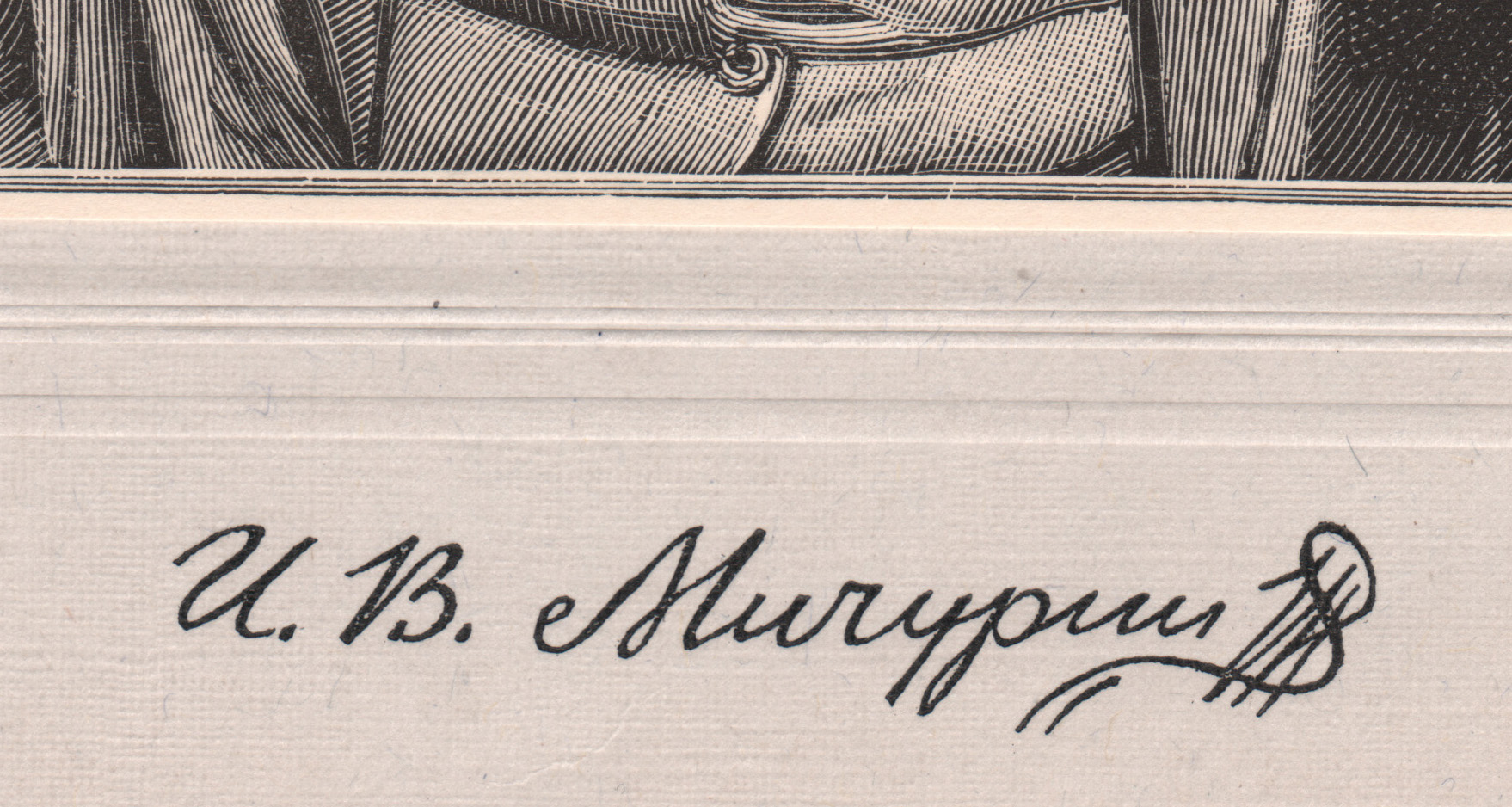 Портрет И.В. Мичурина, гравюра на дереве А.Н. Павлова, 1949 год