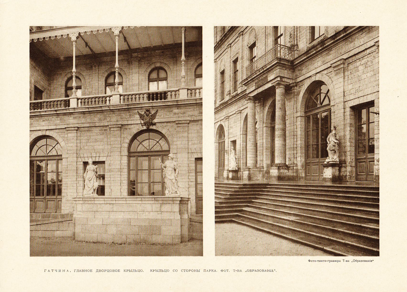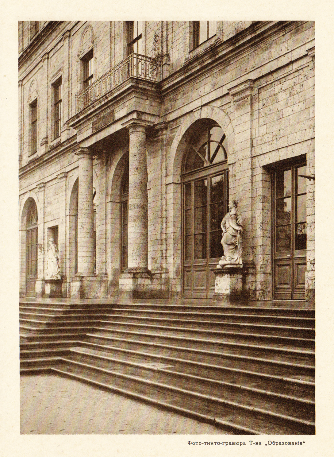Фото-тинто-гравюра 1913 года. Гатчина, крыльцо Большого дворца