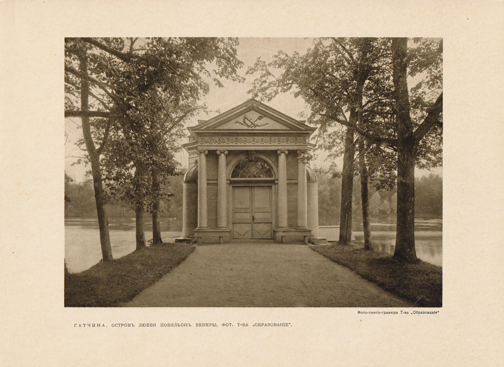 Размер листа 29 x 21,6 см. Павильон Венеры, или Трельяж — павильон в Дворцовом парке Гатчины, расположен на оконечности острова Любви, на берегу Белого озера