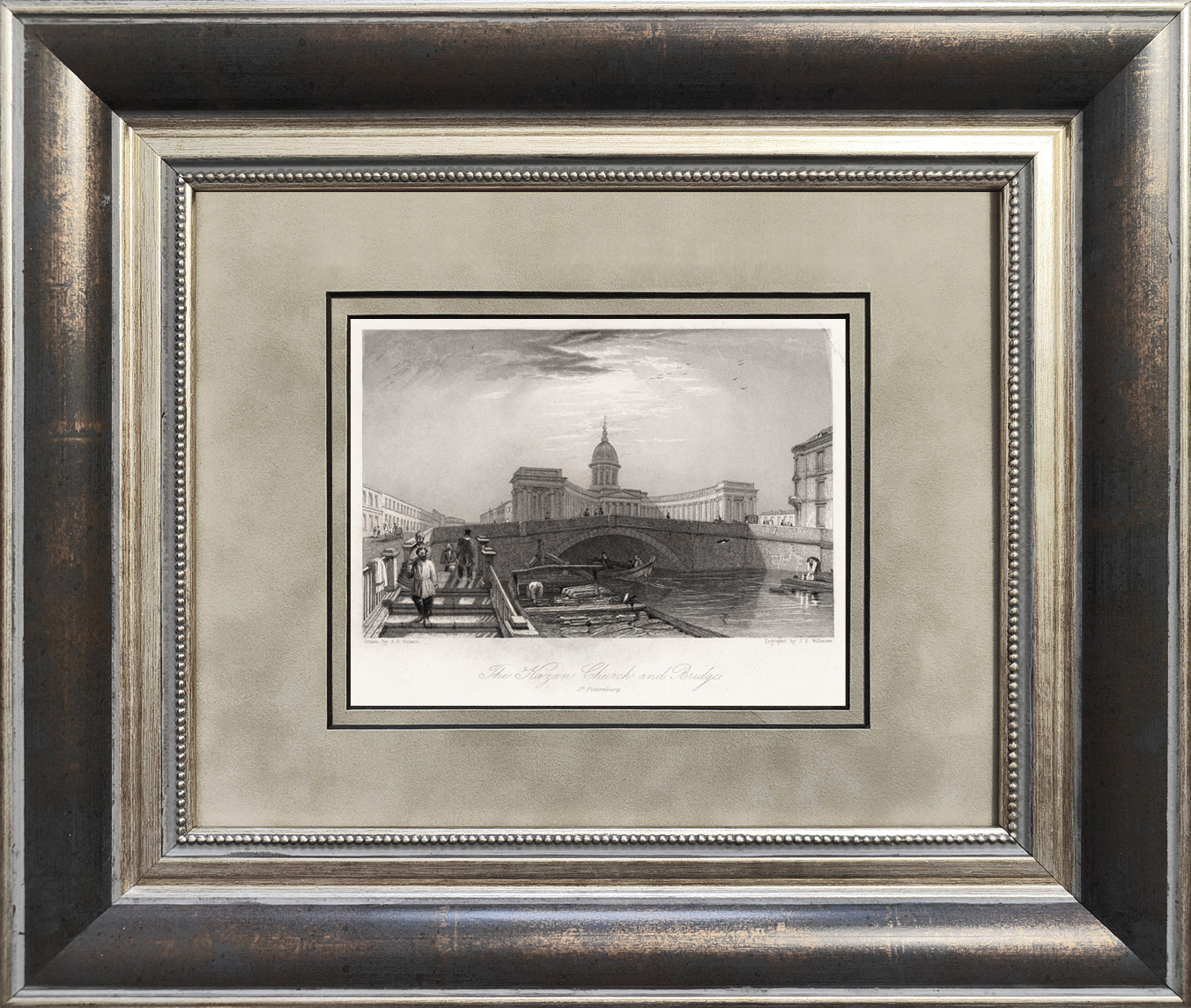Размер рамы 35,3 x 30,2 см. Гравюра редкого английского издания "Живописный ежегодник Хита за 1836 год: Санкт-Петербург и Москва". Плотная бумага, чистая обратная сторона. Пятна старения от 190 летнего возраста.