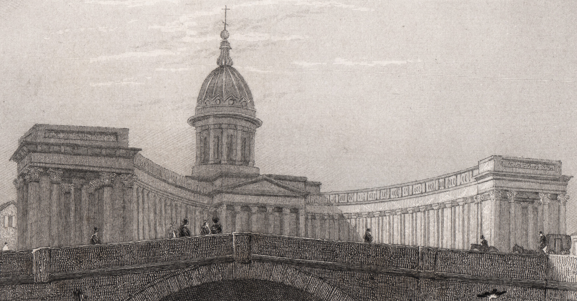 1836 год. Вид на Казанский собор и мост через канал Грибоедова в СПБ