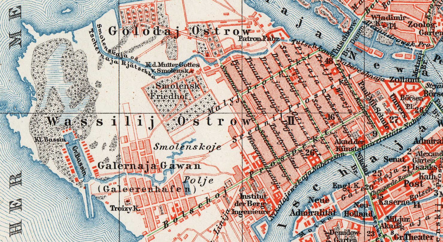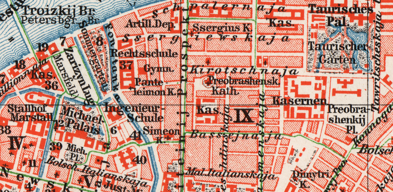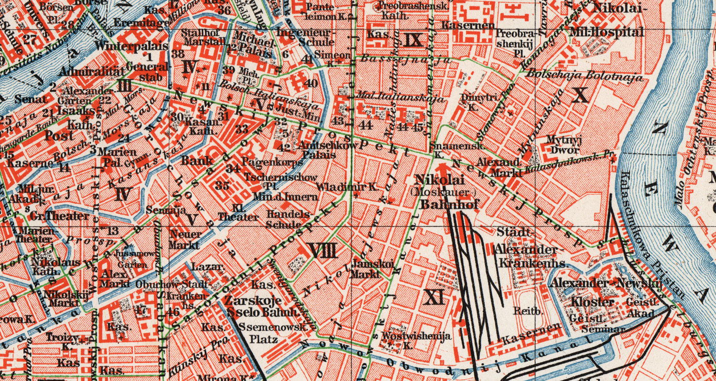 Размер рамы 44 х 40,6 см. Отличное коллекционное состояние карты. Печать в три цвета, масштаб 1:50000. Дата печати плана указана в левом нижнем углу - июль 1896 года "VII 96". Эта карта издания "Лексикона Мейера", отпечатана в издательстве "Библиографический Институт" в Лейпциге. Все названия написаны латиницей в производной от русского произношения: к примеру Newskij Prospekt - Невский Проспект. Карты Санкт-Петербурга выпущенные до конца первой половины XX столетия чрезвычайно редки и украсят любую коллекцию. А обрамленная карта послужит интересным антикварным подарком Вашему начальнику или партнёру, украсит рабочий кабинет или офис компании.