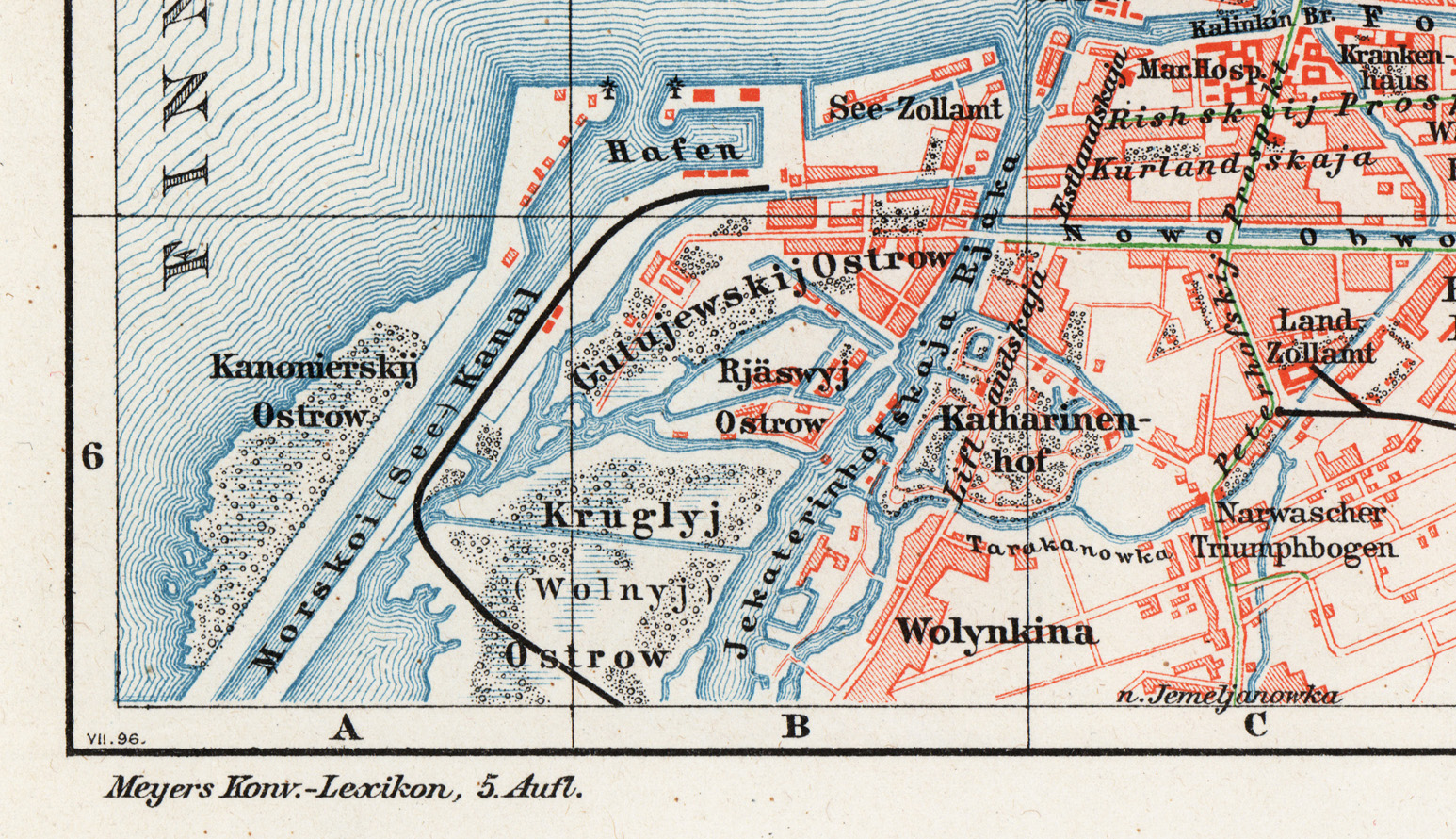 Размер рамы 44 х 40,6 см. Дата печати плана указана в левом нижнем углу - июль 1896 года "VII 96". Эта карта издания "Лексикона Мейера", отпечатана в издательстве "Библиографический Институт" в Лейпциге.