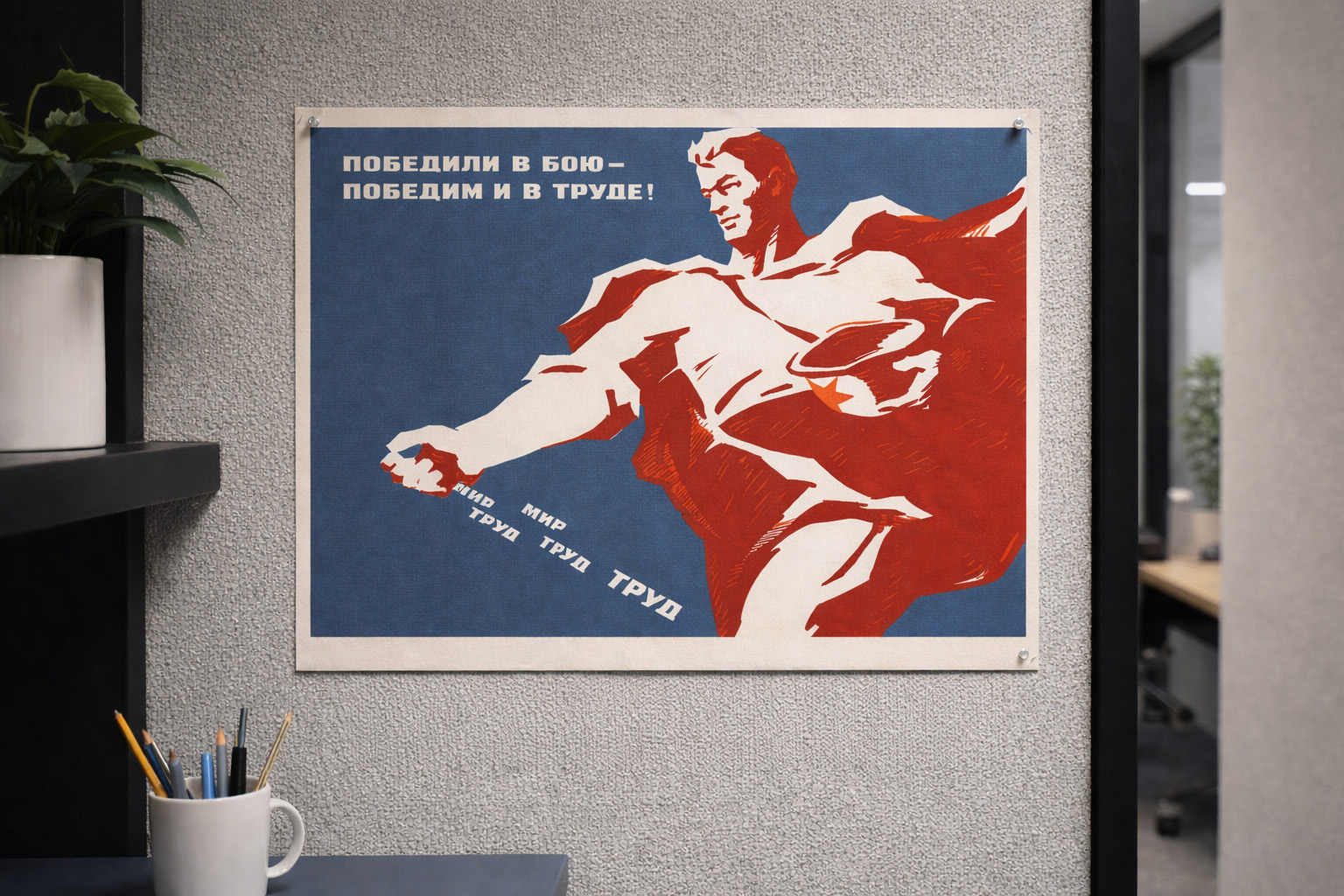 Плакат 1975 года. Победили в бою - победим и в труде!