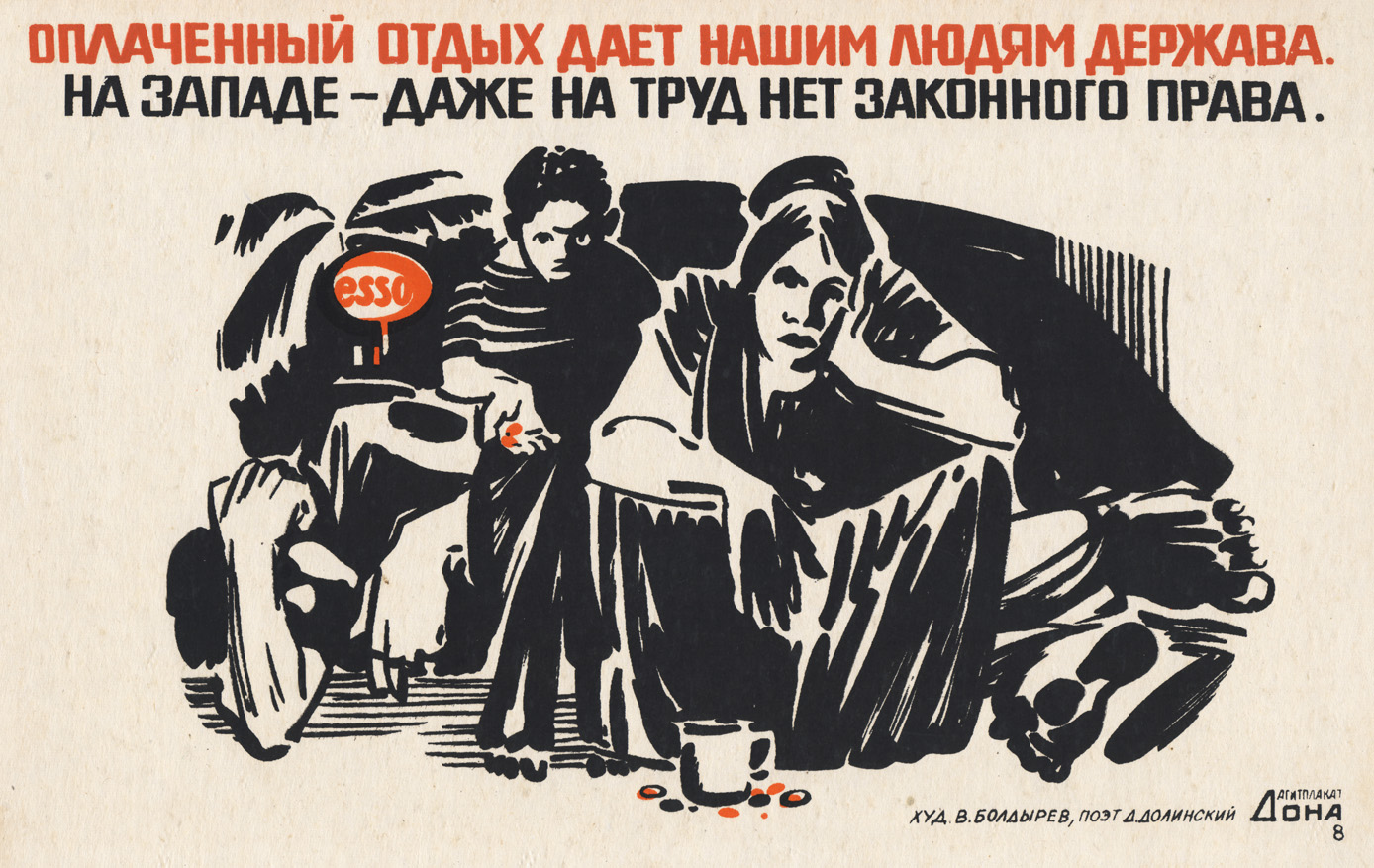Размер плаката 55 х 35 см. Оплаченный отдых дает нашим людям держава. На западе - даже на труд нет законного права.