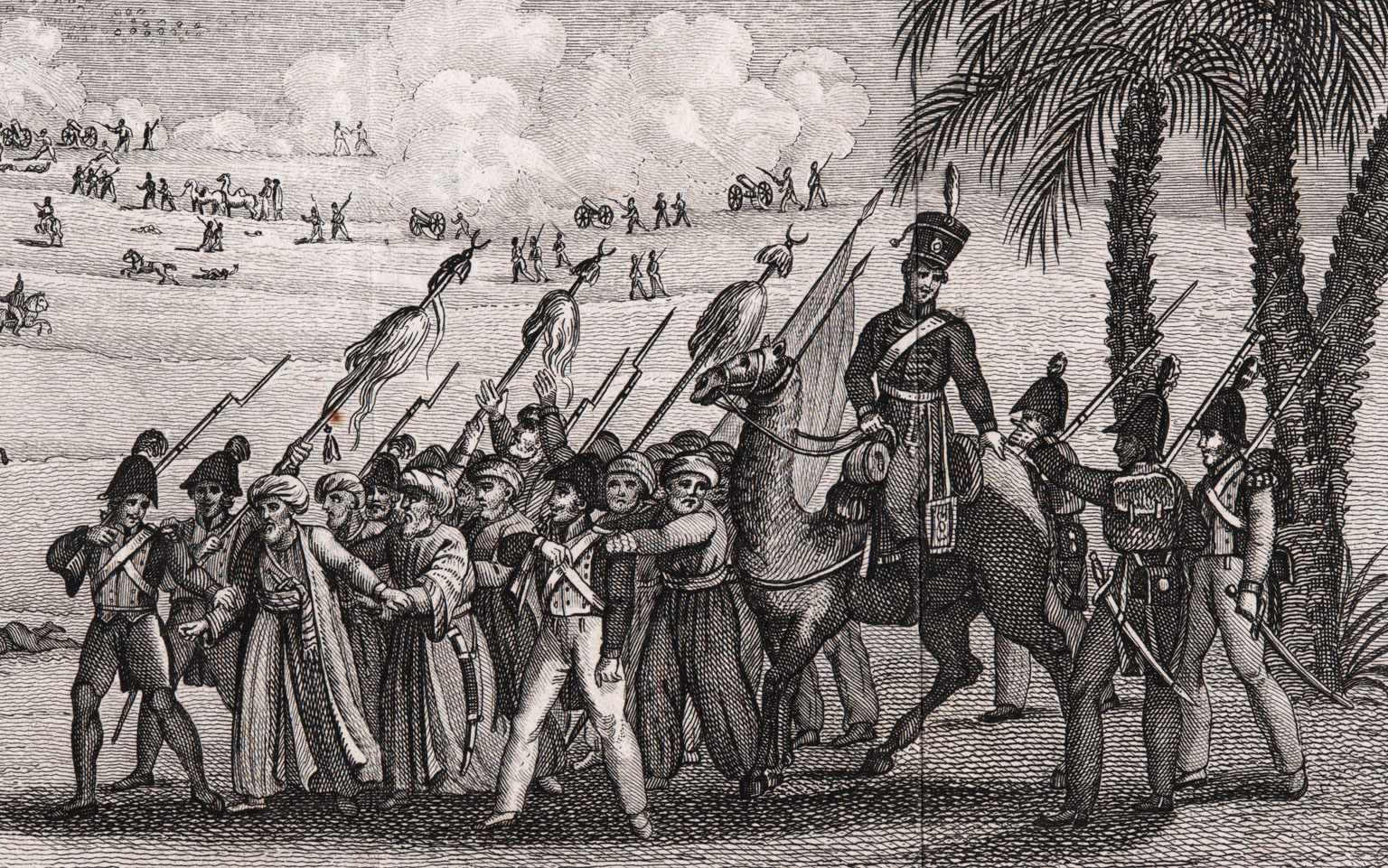 Антикварная гравюра, победа Наполеона над турками, редкость