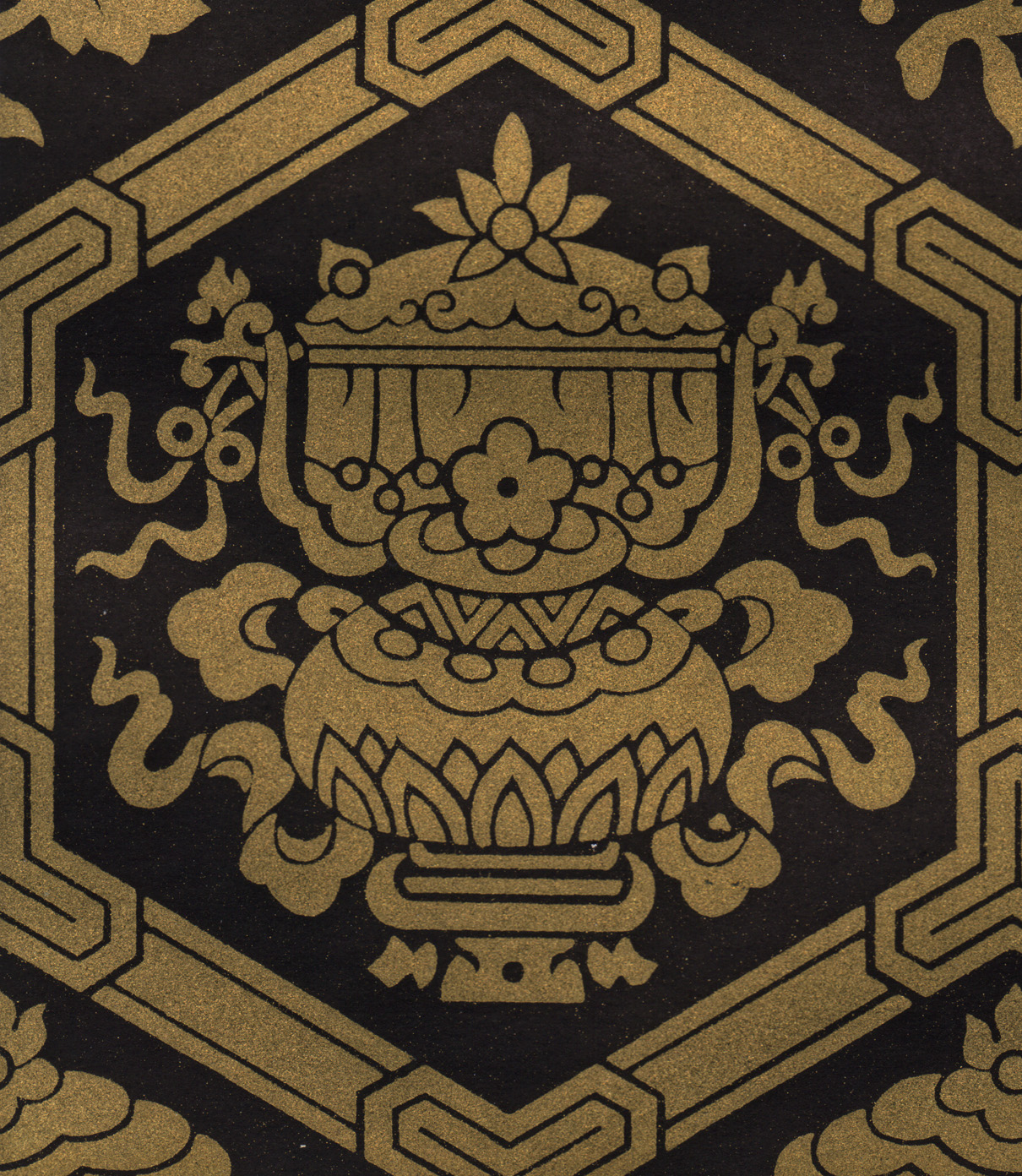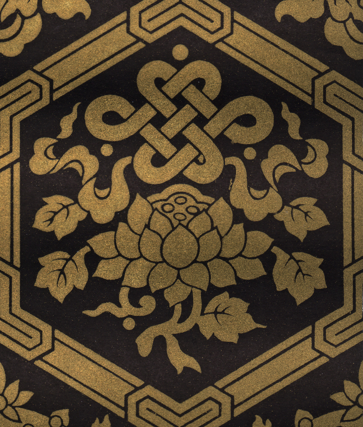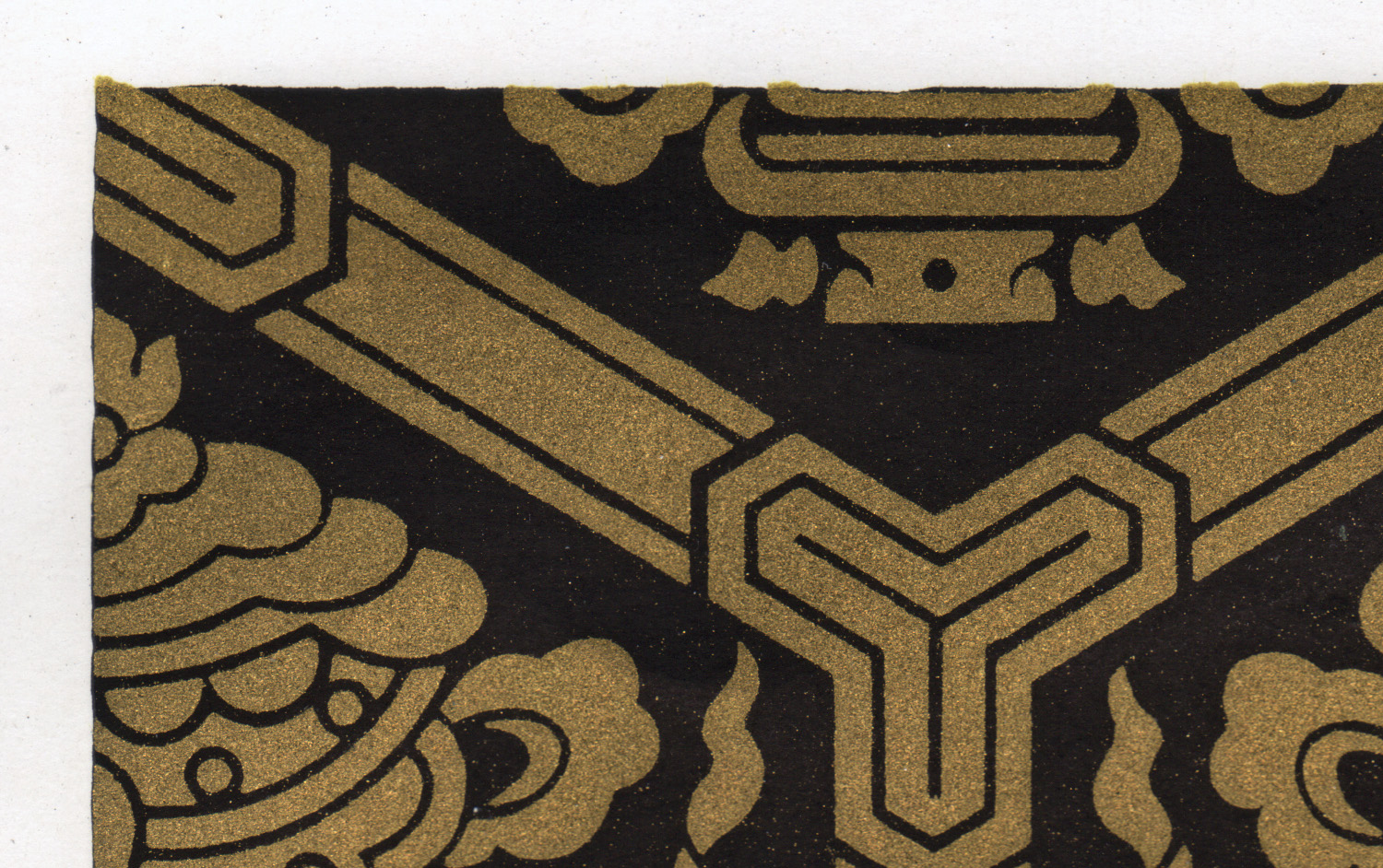 Размер листа 36,6 х 25,9 см. Редкость. Лист с изображением уникального узора традиционной китайской облачной парчи Юньцзинь (ткани из шелка с нитями из серебра и золота) издания "Узор парчи", составитель Нанкинский научно-исследовательский институт Юньцзинь, редактор Чэнь Чжифо, издатель "Книжный магазин Синьхуа", отпечатано в типографии издательства "Китайское классическое искусство", в Пекине, в 1959 году, тиражом 1500 экземпляров.