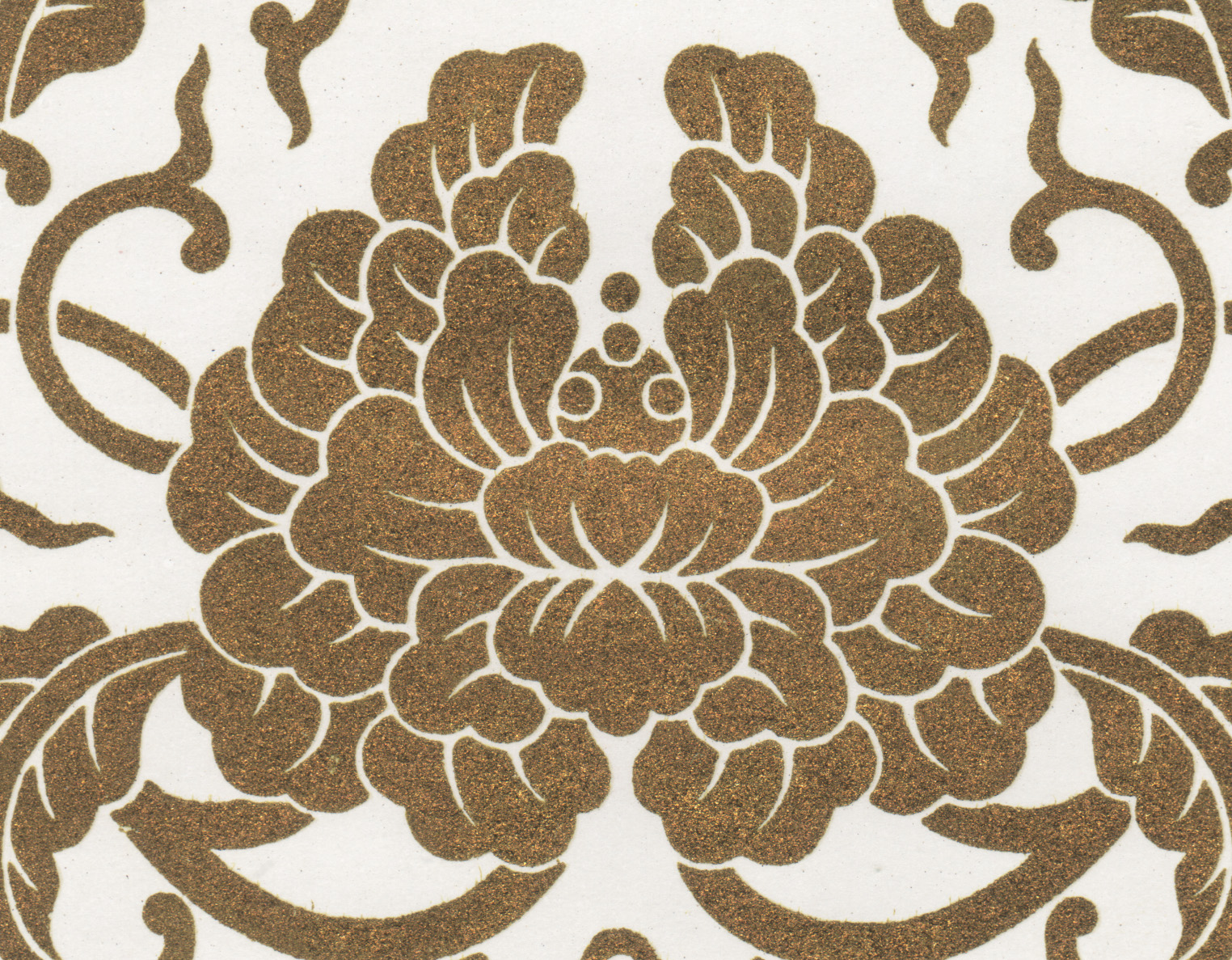 Размер листа 36,6 х 25,9 см. Редкость. Лист с изображением уникального узора традиционной китайской облачной парчи Юньцзинь (ткани из шелка с нитями из серебра и золота) издания "Узор парчи", составитель Нанкинский научно-исследовательский институт Юньцзинь, редактор Чэнь Чжифо, издатель "Книжный магазин Синьхуа", отпечатано в типографии издательства "Китайское классическое искусство", в Пекине, в 1959 году, тиражом 1500 экземпляров.