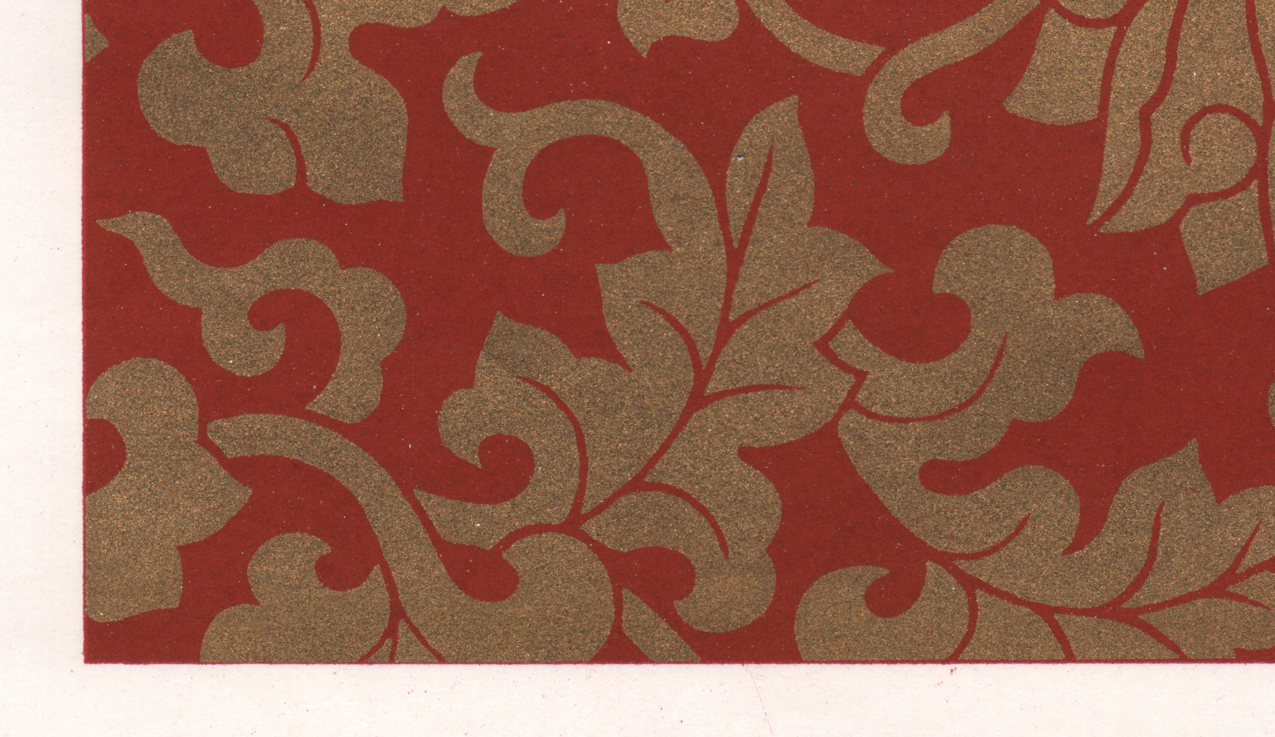 Размер листа 36,6 х 25,9 см. Редкость. Лист с изображением уникального узора традиционной китайской облачной парчи Юньцзинь (ткани из шелка с нитями из серебра и золота) издания "Узор парчи", составитель Нанкинский научно-исследовательский институт Юньцзинь, редактор Чэнь Чжифо, издатель "Книжный магазин Синьхуа", отпечатано в типографии издательства "Китайское классическое искусство", в Пекине, в 1959 году, тиражом 1500 экземпляров.