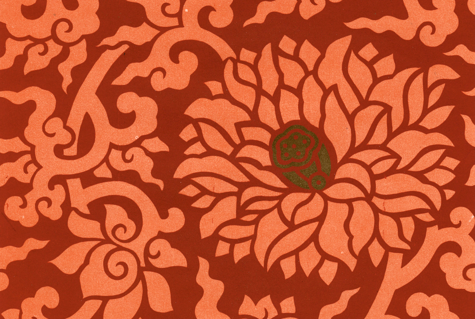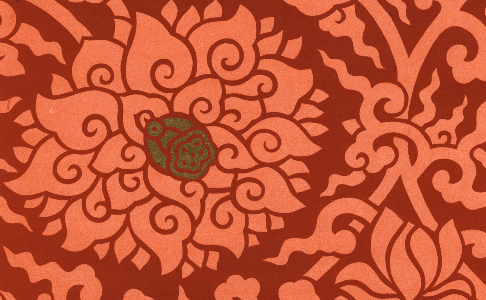 Размер листа 36,6 х 25,9 см. Редкость. Лист с изображением уникального узора традиционной китайской облачной парчи Юньцзинь (ткани из шелка с нитями из серебра и золота) издания "Узор парчи", составитель Нанкинский научно-исследовательский институт Юньцзинь, редактор Чэнь Чжифо, издатель "Книжный магазин Синьхуа", отпечатано в типографии издательства "Китайское классическое искусство", в Пекине, в 1959 году, тиражом 1500 экземпляров.
