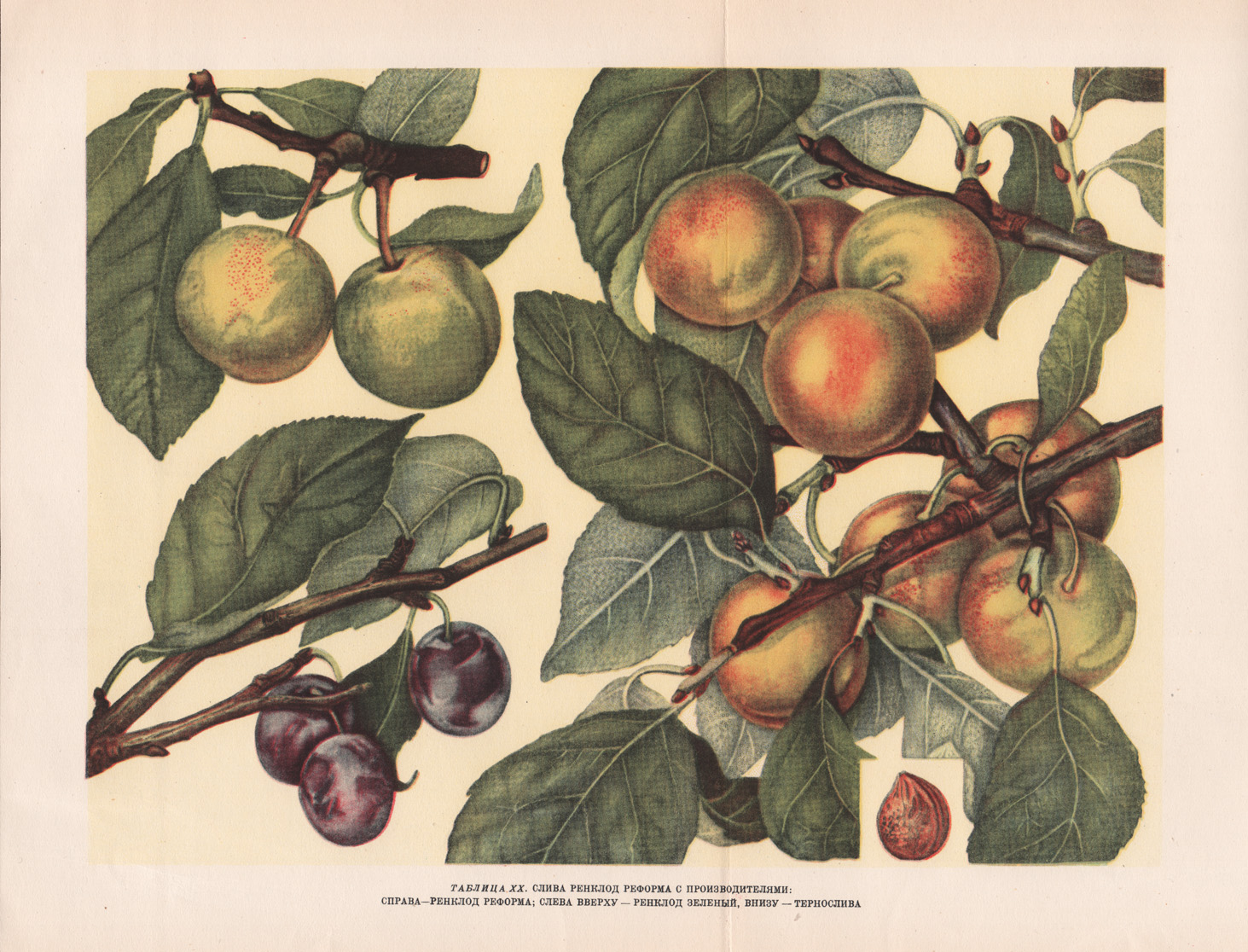 Иллюстрация Сельхозгиза 1949 года. Слива Ренклод Реформа