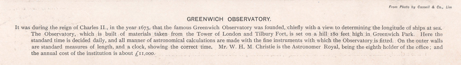 Размер листа 29.8 х 22.8 см. Через обсерваторию в Гринвиче проходит нулевой меридиан, так же в ней был принят отсчет всемирного времени по Гринвичу