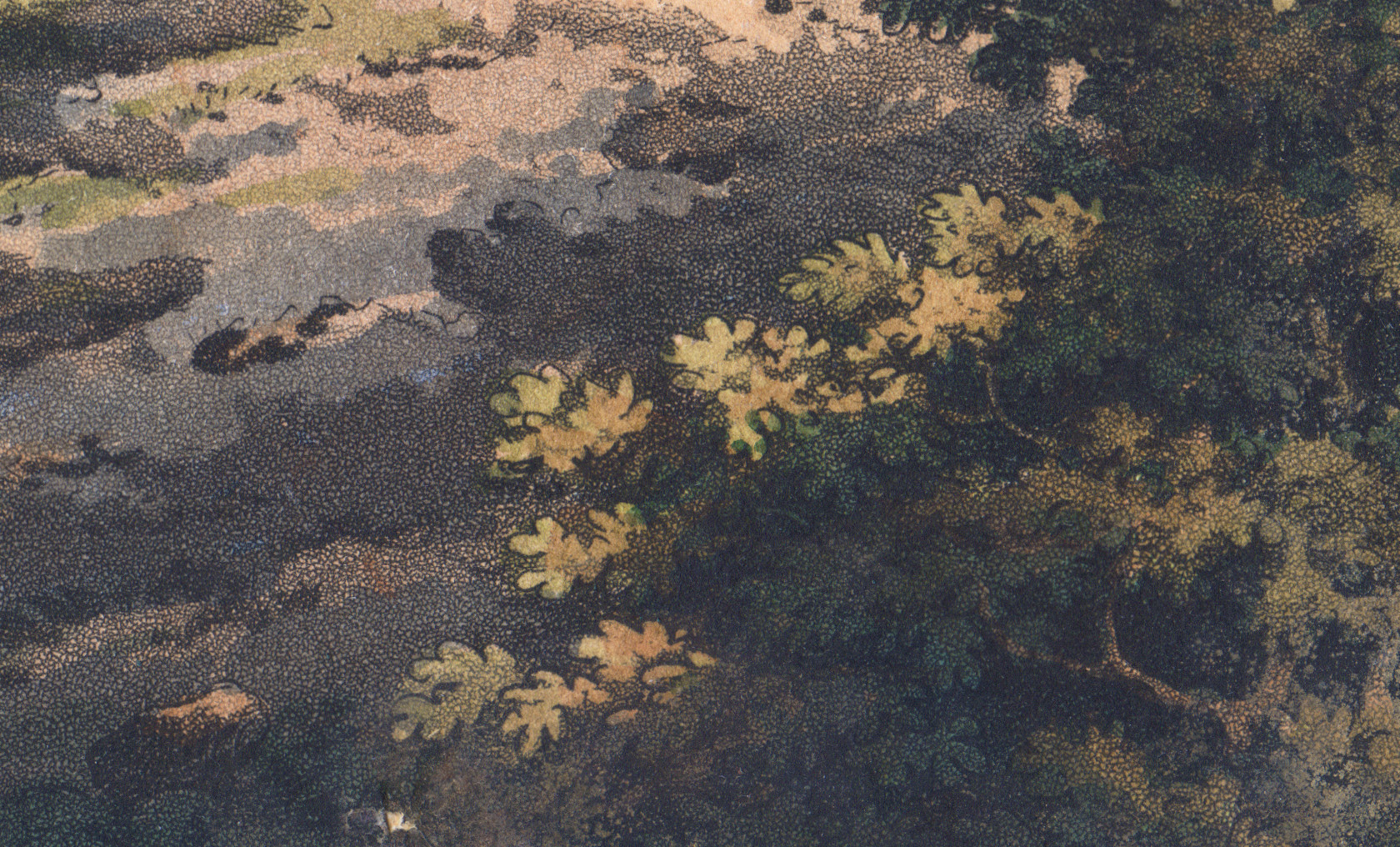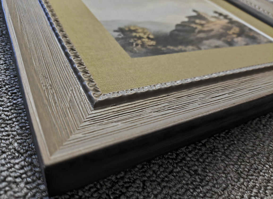 Размер рамы 32.8 x 27.3 см. Современное обрамление в брашированный багет из натурального дерева, картон-паспарту с льняным покрытием, импортное тонкое багетное стекло "Фениция", верхний подвес гравюры бескислотной консервационной лентой, задник из паспарту, пылевая защита, подвес рамы - трос, гарантийный сертификат-аннотация на обратной стороне рамы.