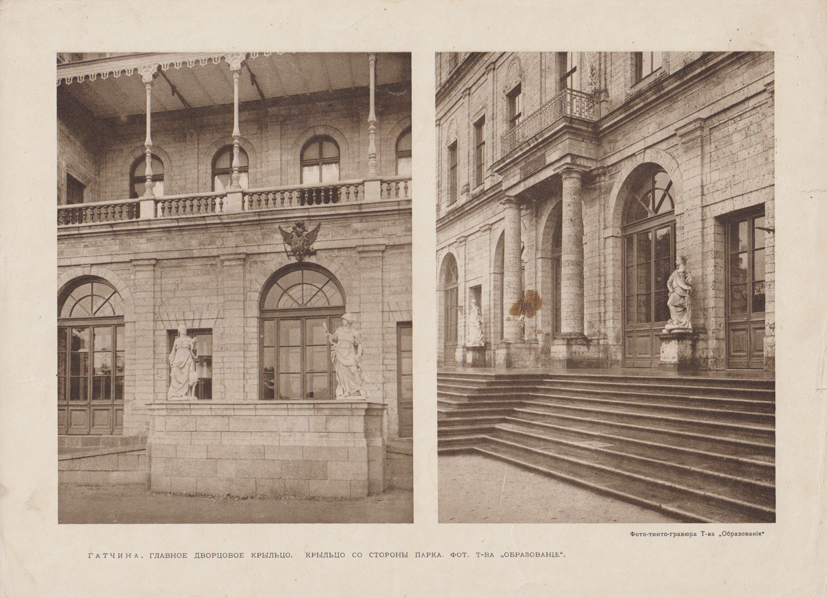 Фото-тинто-гравюра 1913 года. Крыльцо Гатчинского дворца
