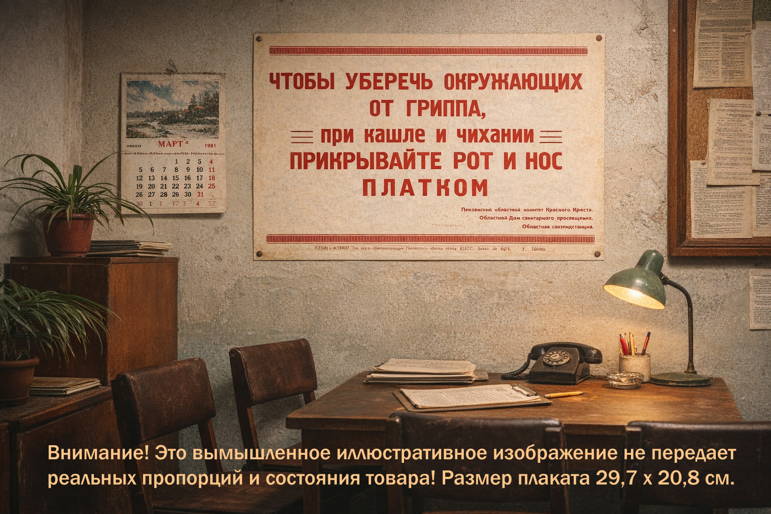 Размер плаката 29,7 х 20,8 см. Редкость! Малотиражное региональное издание. Советский агитационный плакат санитарно-просветительной тематики. Отпечатан 17 июля 1981 года тиражом 10000 экз. в типографии издательства "Пензенская правда" Пензенского обкома КПСС по заказу Пензенского областного комитета Красного креста, Областного Дома санитарного просвещения и Областной санэпидстанции.