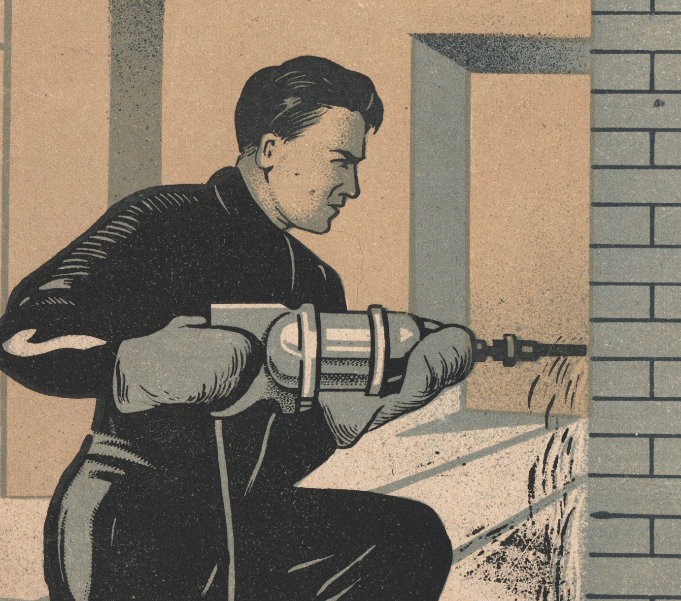 Плакат 1946-47 гг. Ручная дрель с электроприводом