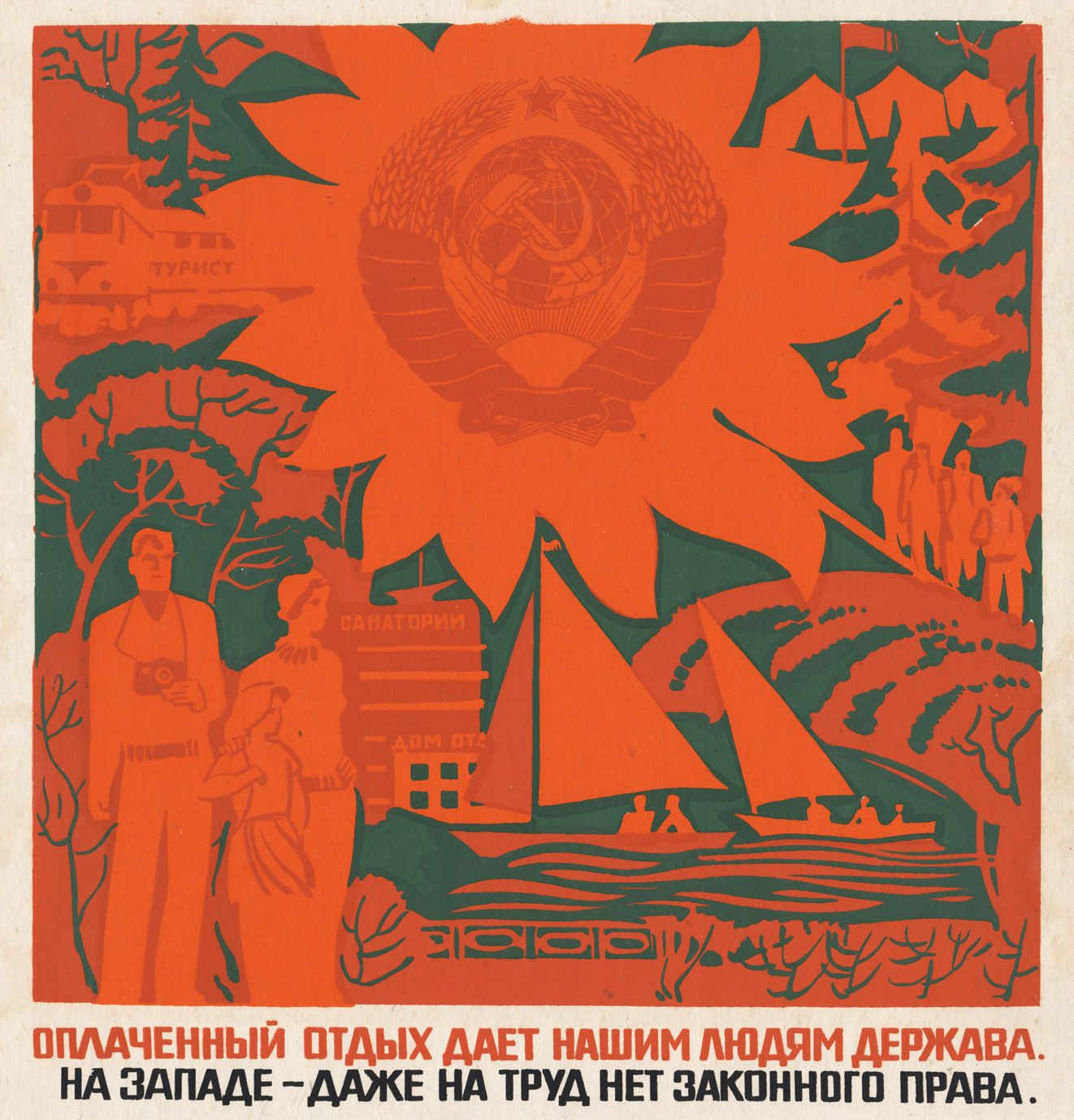 Размер плаката 55 х 35 см. Оплаченный отдых дает нашим людям держава. На западе - даже на труд нет законного права.