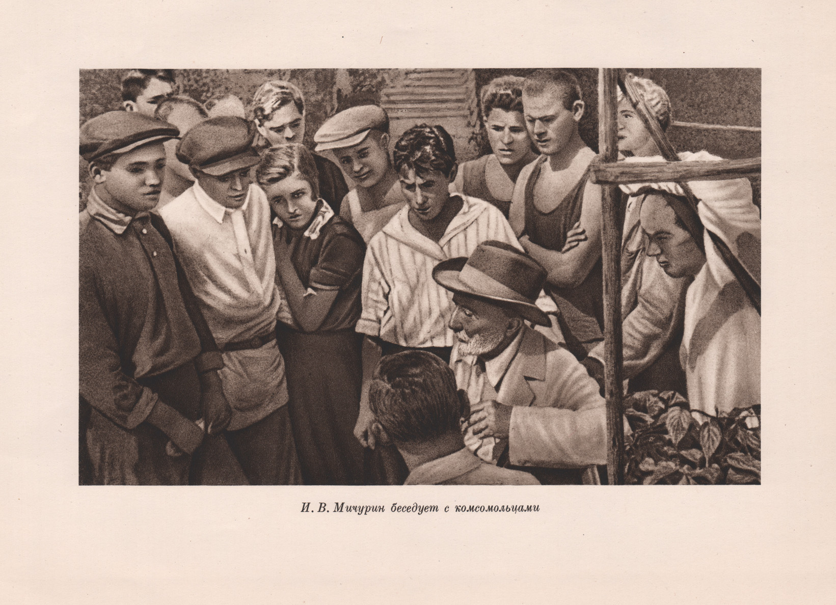 Фототипия 1949 года. Комсомольцы и Мичурин