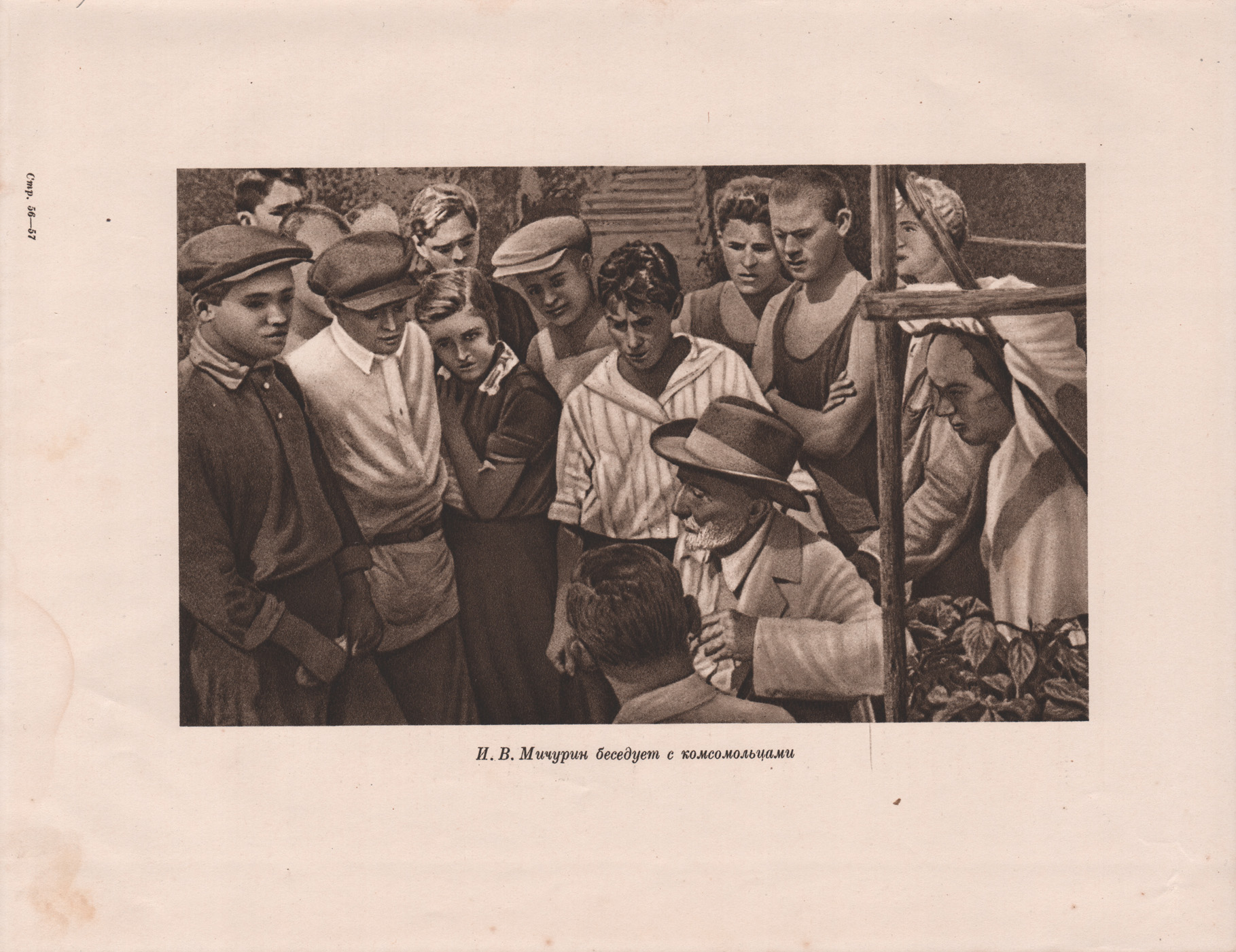 1949 год. И.В. Мичурин беседует с комсомольцами