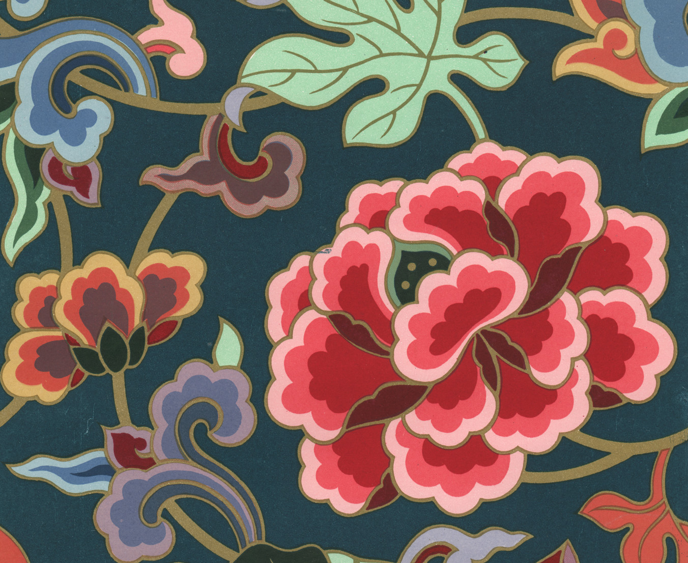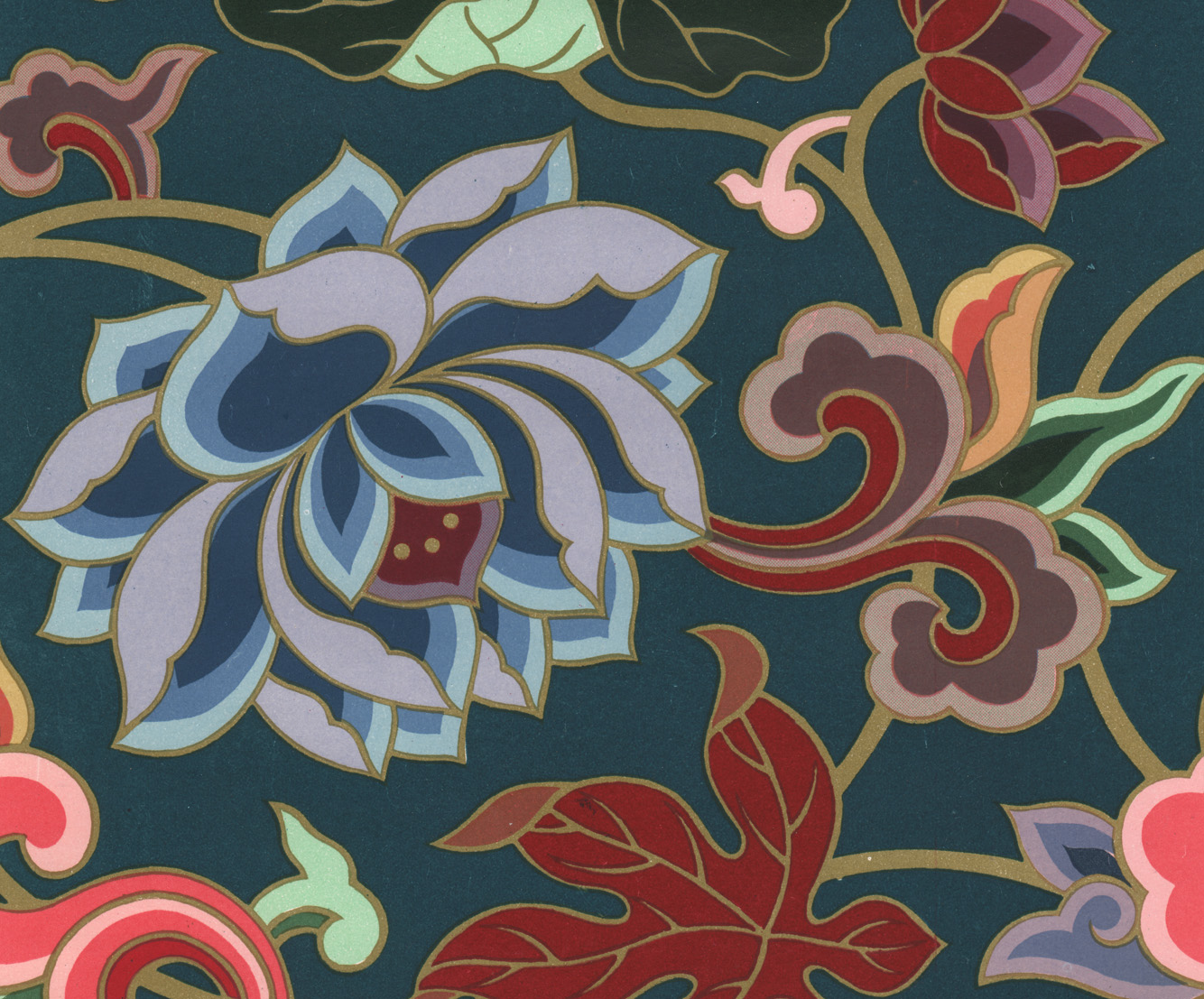 Размер листа 36,6 х 25,9 см. Редкость. Лист с изображением уникального узора традиционной китайской облачной парчи Юньцзинь (ткани из шелка с нитями из серебра и золота) издания "Узор парчи", составитель Нанкинский научно-исследовательский институт Юньцзинь, редактор Чэнь Чжифо, издатель "Книжный магазин Синьхуа", отпечатано в типографии издательства "Китайское классическое искусство", в Пекине, в 1959 году, тиражом 1500 экземпляров.
