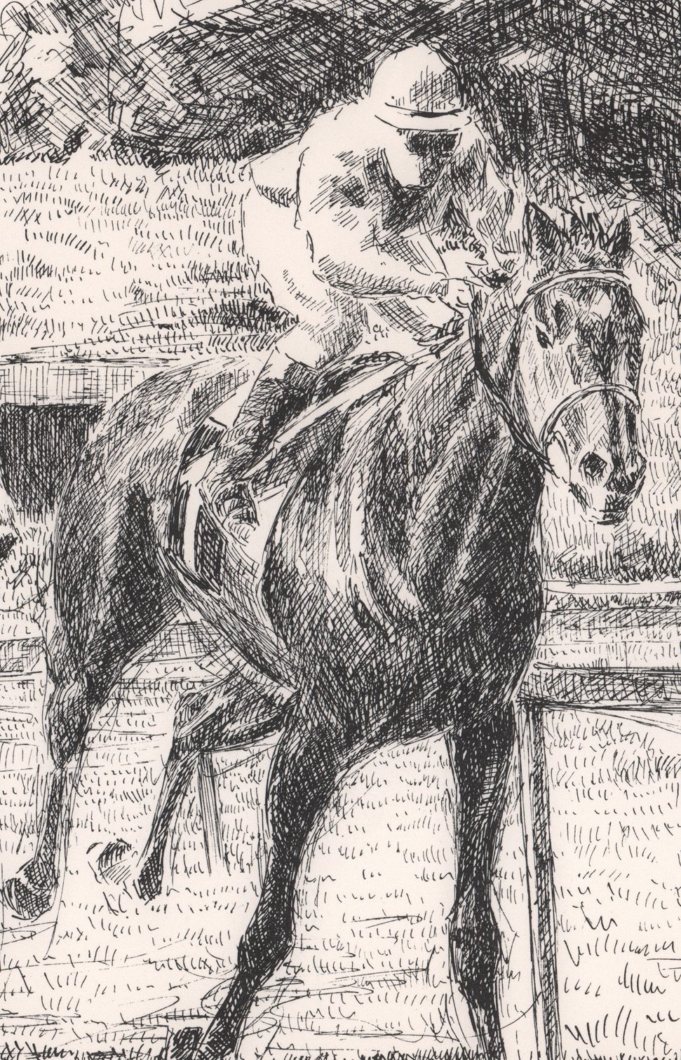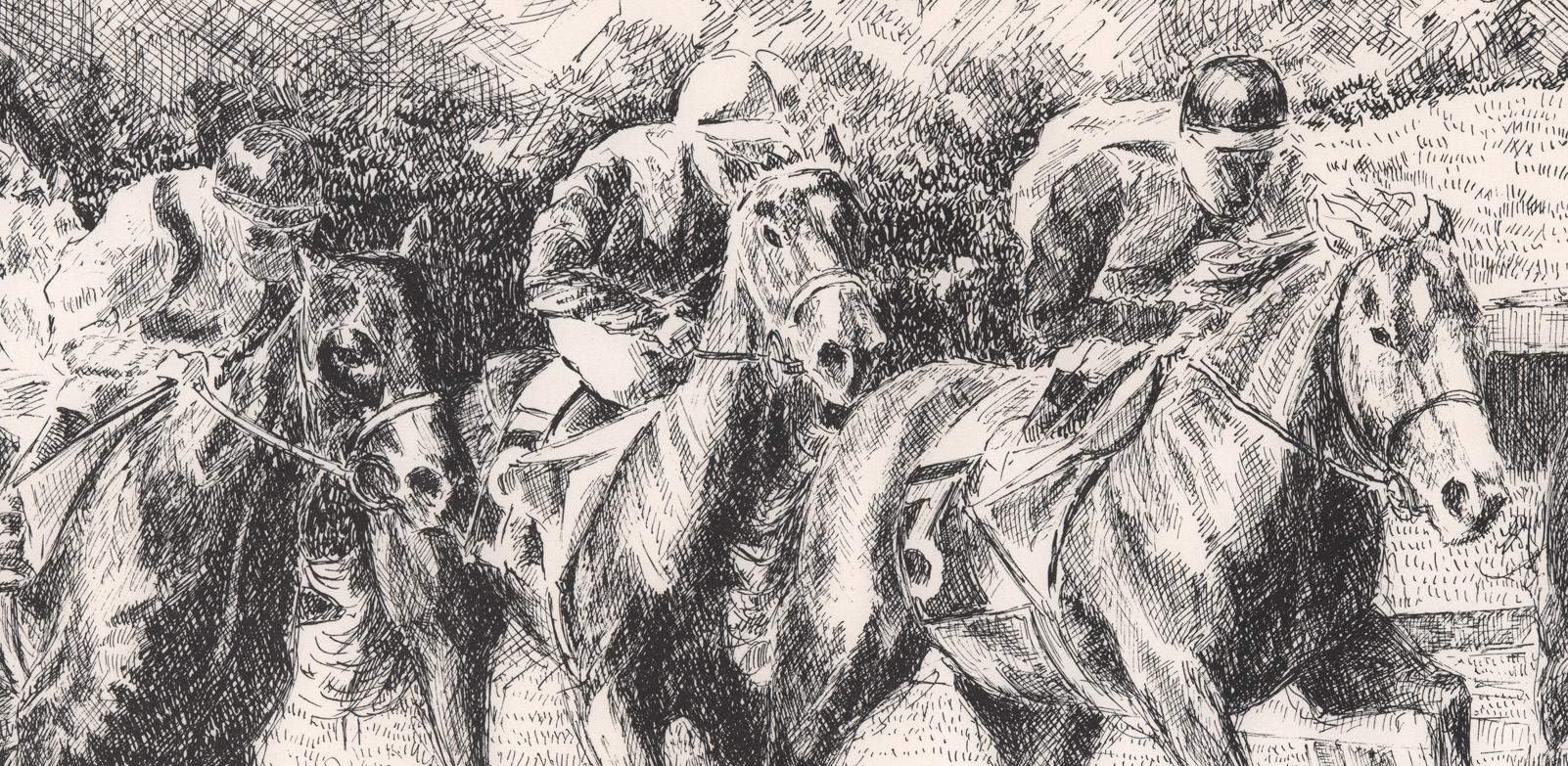 Литография 1970-ых гг. Ипподром в Лоншане, Париж, Франция